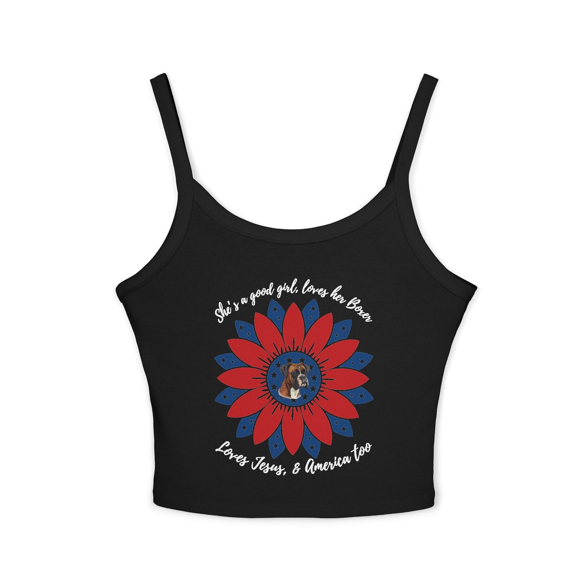 She's A Good Girl, Loves Her Boxer Patriotic Flower - Boxer Dog Tank Top